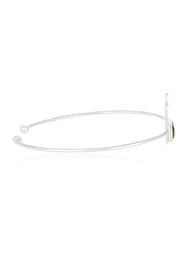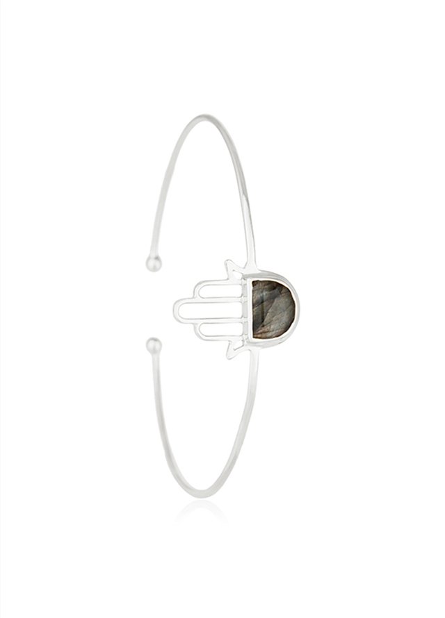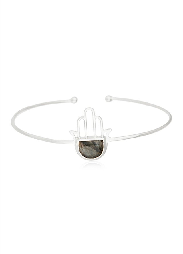 Silver bracelet with labrodorite, a modern and delicate rendition of the 'Hamsa' symbol.