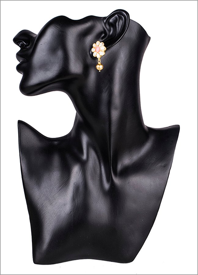 Silver earrings in gold finish with mother of pearl and pink chalcedony, to make a delicate and ethnic statement for a very feminine look.