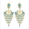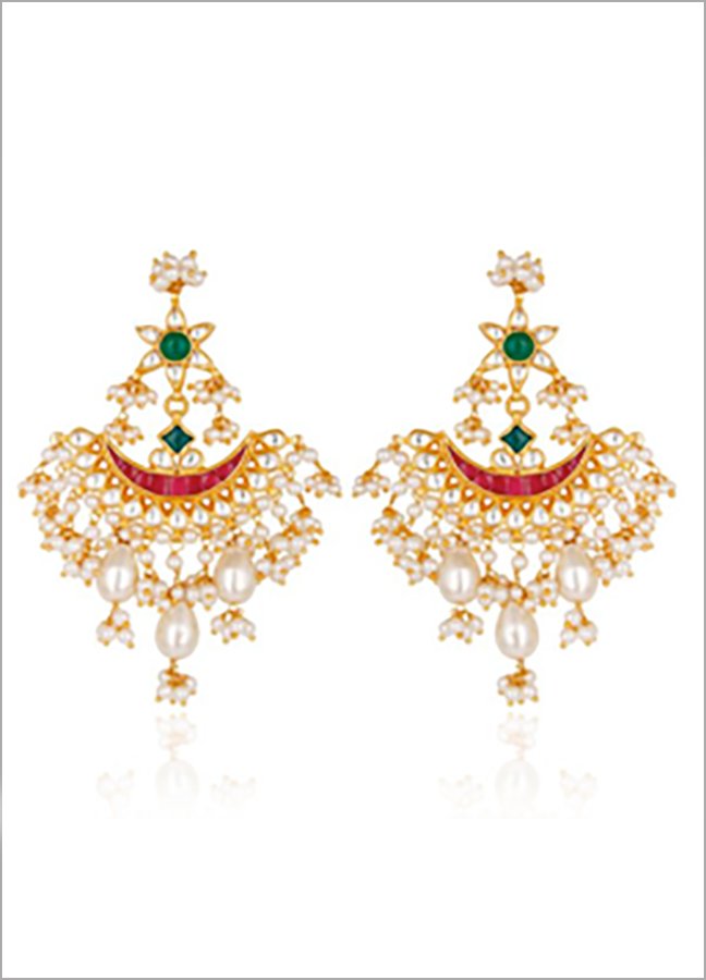 Silver earrings in gold finish with red and green onyx and pearls, to make a bold and ethnic statement for a very feminine look.