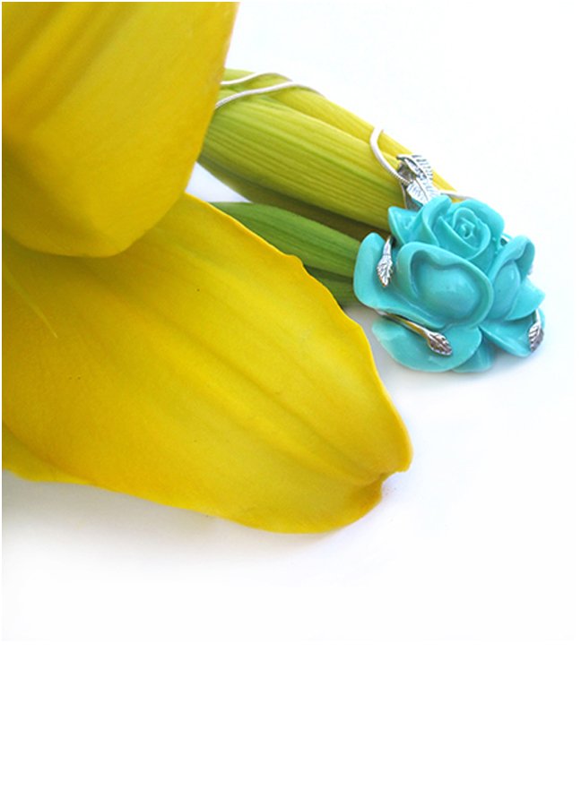 Silver necklace with turquoise rose, to make a beautiful statement.