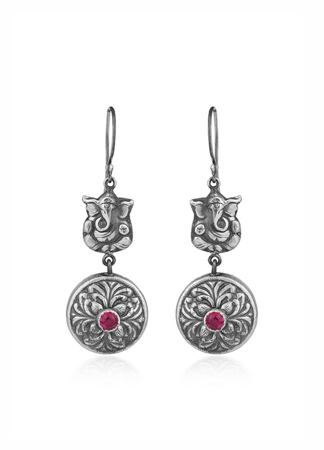 Silver tribal earrings with rubies, an ethnic and bold statement for a carefree bold look.